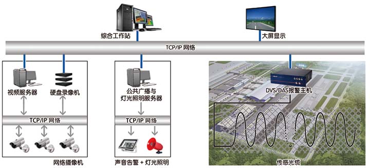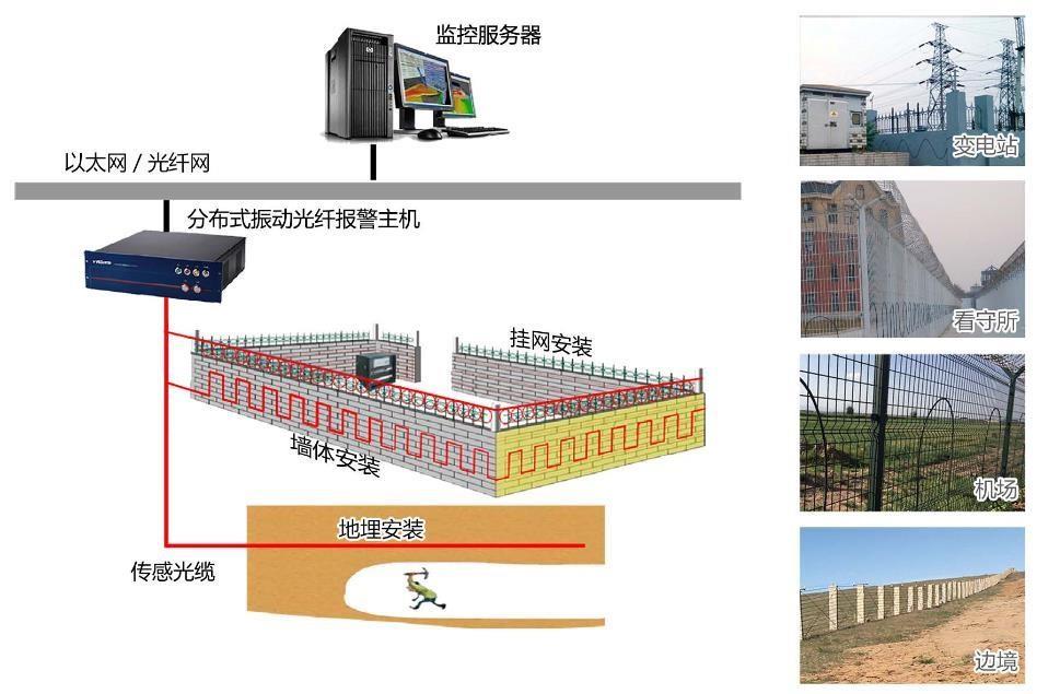 光纖振動探測、視頻監(jiān)控、聯(lián)動輔助、網(wǎng)絡傳輸、系統(tǒng)算法、服務器系統(tǒng)、防雷接地、監(jiān)控中心等子系統(tǒng)。